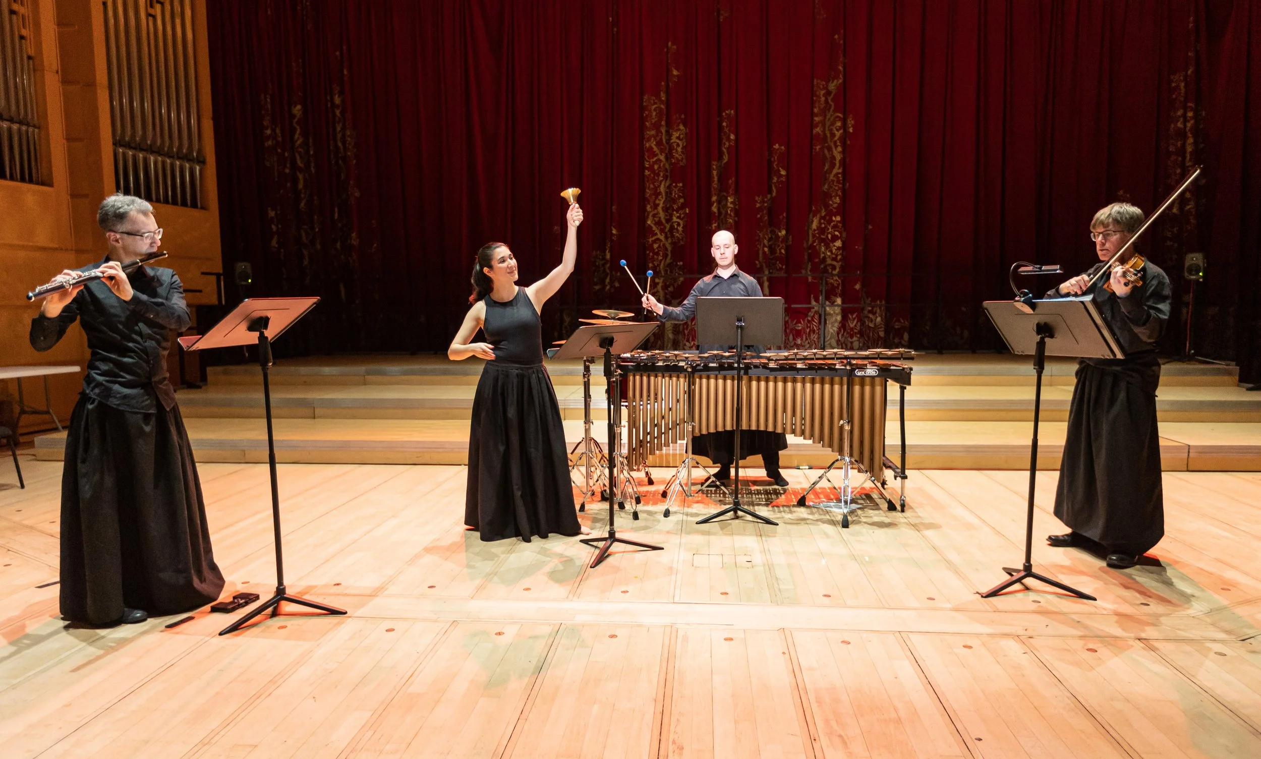 Ipsa Collective is a new Scotland-based music ensemble composed of soprano Stephanie Lamprea, violinist Feargus Heatherington, flautist Richard Craig, and percussionist Darren Gallacher. They are committed to programming and commissioning experimental new chamber works that incorporate interdisciplinary elements. Ipsa Collective performs works of mixed instrumentation including duos, trios, and quartets. The group formed through their 2023 performance of Kate Soper’s Ipsa Dixit in Glasgow, which they reprised in 2024 for Sound Scotland’s soundfestival. They have also curated duo and trio performances of various players in the group, having performed in Glasgow, Edinburgh, Aberdeen, and the Republic of Ireland.